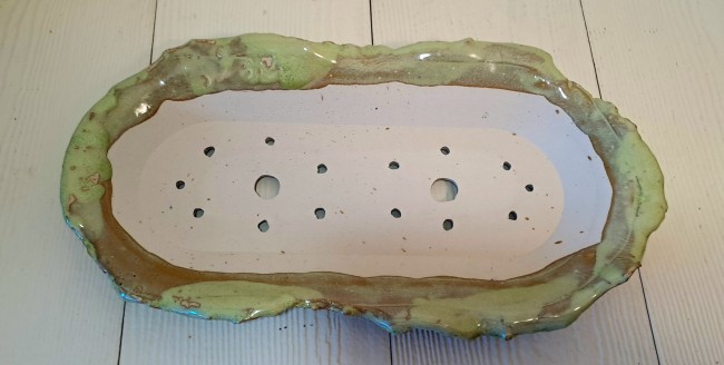 Pot à bonsaï en grès vert – forme allongée, 16 trous de drainage, 3 pieds – idéal forêts miniatures
