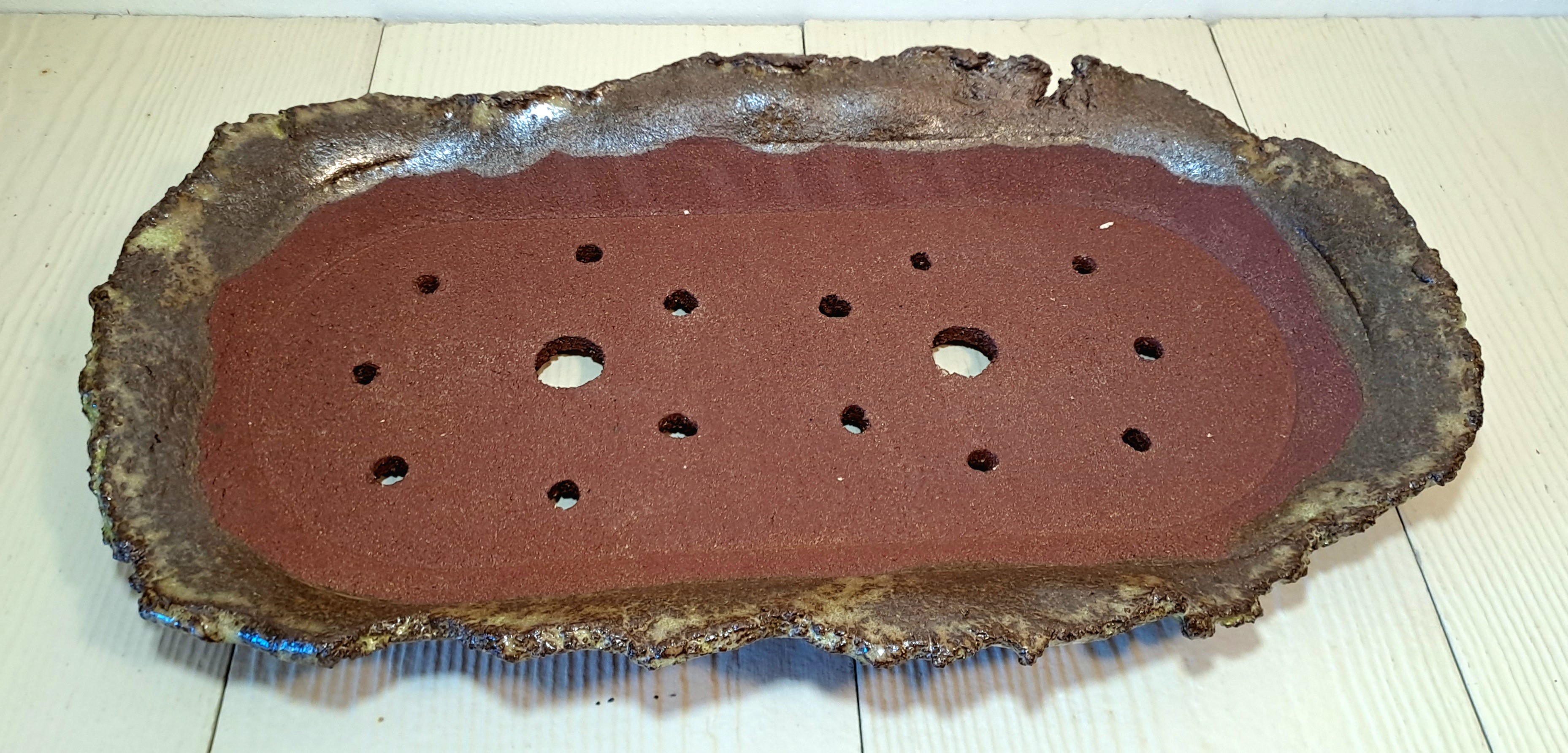 Pot à bonsaï en grès brun foncé – forme allongée, 16 trous de drainage, 3 pieds – idéal forêts miniatures